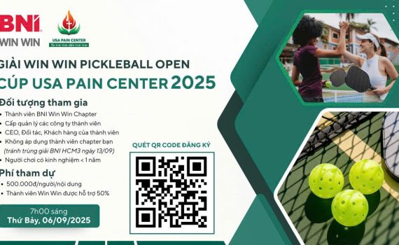 Khi thể thao trở thành cầu nối doanh nhân Ngày 06/09/2025, cộng đồng BNI Win Win Chapter sẽ chính thức khởi động một sự kiện thể thao đầy hứng khởi: Giải Win Win Pickleball Open – Cúp USA Pain Center 2025. Đây không chỉ là một giải đấu thể thao đơn thuần, mà còn là…
